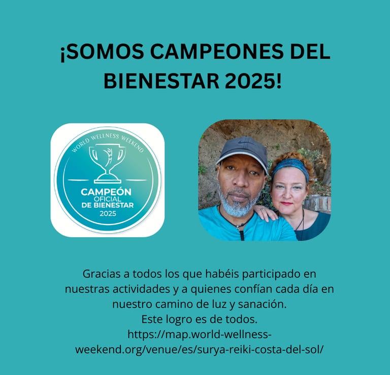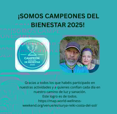 En SURYA REIKI COSTA DEL SOL estamos felices de compartir que hemos sido reconocidos oficialmente por World Wellness Weekend como CAMPEONES DEL BIENESTAR 2025